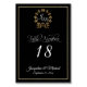 "Elegant Script Typography Black Gold Wreath Table Number." Personalized with your monograms, names and wedding (or other event) date, these are sophisticated and elegant table number cards. Art graphically designed by internationally licensed artist and designer, Audrey Jeanne Roberts, copyright.