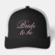 Elegant script typography Bride to be hat . Classy cap for wedding party, bridal shower, bachelorette, girls weekend, hen party, girls night out etc. Custom design with stylish pink typography.