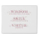 Elegant pink and white design of the motivational quote "Wisdom is knowing what to do next, skill is knowing how to do it, virtue is doing it" set in modern typography.