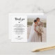 Elegant wedding photo thank you postcard for your guests. Beautiful script with pre written changeable message, names and date.
