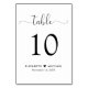 Elegant wedding reception table number sign featuring "table" in a stylish script with swashes, the table number in classic serif typography, your first names joined together by a heart and your reception date. Create each table number sign and add to your shopping cart one at a time, then check out once all numbers are in your cart.