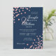 Elegant Script Wedding Rose Gold Confetti Navy Blu Invitation