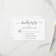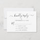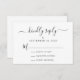 Chic wedding RSVP card featuring "rsvp" in an elegant script with swashes, simple and modern typography and your names joined by a heart on the back.
