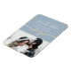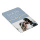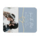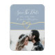 Simple, minimalist, modern script, elegant dusty blue wedding save the date invitation magnet with faux gold rope heart and photo.