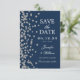 Elegant Script Wedding Silver Confetti Navy Save The Date