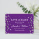 Elegant Script Wedding Silver Confetti Purple Save The Date