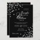 Elegant Script Wedding Silver Confetti QR Black Invitation