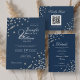Elegant Script Wedding Silver Confetti QR Navy Invitation