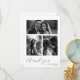 Express your gratitude in style with this customizable wedding thank-you card. Featuring space for multiple photos and an elegant script font, this modern collage design allows you to showcase your favorite wedding memories. Personalize with your names, wedding date, and photos to create a heartfelt keepsake for family and friends. A timeless and stylish way to thank your guests for being part of your special day.