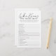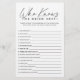 Spice up your modern black and white bridal shower with the Elegant Script Who Knows The Bride Best Game! This sophisticated bridal shower game features a minimalist script font for a clean, timeless look. Laugh and bond over your favorite bride memories as you try to prove you know her best. With thoughtful questions that spark conversation, this game makes for a heartfelt celebration. Perfect for a classy, intimate bridal shower with close friends, the Elegant Script Game adds a touch of distinction. It's a memorable way to honor the bride while bringing your guests together. Make your bridal shower one to remember with this unique game!
