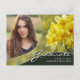 A unique custom photo graduation announcement postcard, featuring design elements of elegant handwritten style script with modern text. The graduates photo is enhanced by beautiful yellow flowers on a forest green background. The back of the card offers personalized text spaces for information about the graduation and future journey. To see more items like this, visit my store here at "www.Zazzle.com/LakeViewCardCo". Thanks
