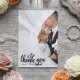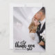 Share the romance of your special day with a bold yet elegant finish. This design features a stunning full-bleed layout that places your favorite wedding photography front and center, overlaid with hand-lettered brush calligraphy and decorative heart flourishes. Ideally suited for modern couples, the jet black ink against the soft photo background creates a chic, high-contrast look that makes your message of gratitude truly memorable.