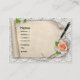 Fancy design showing a scroll on a lace background, with a pen and roses
