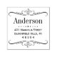 Stylish self-inking stamper design features an elegant scroll frame with custom surname and return address text that can be personalized.