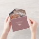 A swirling wedding calligraphy script The Wedding Of adorns this elegant mauve color announcement that includes an RSVP card, making an outstanding announcement to your wedding day ceremony. Personalize all of your wedding details in the guide above to make it your own.