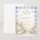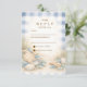 A refined coastal wedding design featuring an elegant oval wreath of seashells, oyster shells, starfish, and soft sea glass accents. Neutral sandy tones blend with muted ocean blues and delicate dune grasses to create a serene seaside aesthetic. The warm parchment background enhances the natural textures while maintaining a timeless, elevated feel. Perfect for a romantic beach celebration with classic coastal charm.