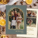Elegant Seasons Greetings Gold Arch Green 4 Photo Holiday Card