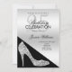 Elegant Sequin Stiletto, Silver & Black Birthday Invitation