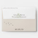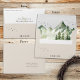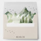 Watercolor landscape painting of trees, flying birds and montains decorating the inside of the envelope. Tranquil green colors of a serene nature scenery. Add bride and groom name and return address. On front write guest name and address.