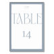 Elevate your wedding reception with these elegant table number cards, designed to impress your guests from the moment they arrive. Featuring a classic serif font for 'TABLE' and a bold numeral '14', these cards exude sophistication. The subtle blue-gray border frames the minimalist design, complementing any formal event's decor. At the top, your monograms are elegantly displayed, adding a personal touch to each table setting. These cards are perfect for creating a seamless and memorable dining experience for you and your guests.