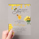 Sweet and trendy Yellow Honey Bee Themed Elegant She Found Her Honey Bee Bridal Shower Acrylic Invitation featured watercolor yellow honey, bees, honeycombs, and sunflower flowers. Matching products you can find in the collection.