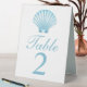 Add a touch of seaside charm to your celebration with this elegant table number sign, featuring a delicate shell motif in beautiful blue turquoise tones. Inspired by the ocean’s beauty and graceful seashells, this versatile design is perfect for nautical, beach, and coastal weddings, as well as summer parties and romantic destination events. Whether you're planning a dreamy seaside wedding or a festive beach gathering, this table number sign brings breezy elegance to every table.