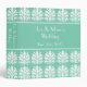 This elegant design features a white shell flourish damask motif against an aquamarine background. It is ready to personalize with your name, event, or personal details. The background color may also be customized to a wide array of colors. Suggested uses include wedding planning, photos, or a place to keep cards and other mementos of your special occasion.