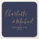 Elegant Signature Script Navy Blue Gold Wedding Square Paper Coaster