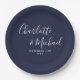 Elegant Signature Script Navy Blue Wedding Paper Plates