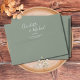 Featuring signature script names, this elegant return address envelope can be personalized with your names and address details in chic white lettering on a silver sage background. You can customize the background to your favourite wedding theme color. Designed by Thisisnotme©