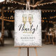This is an elegant and modern 90th Birthday Party welcome sign featuring a silvery glitter border, a pair of watercolor champagne glasses and a modern script font. This would be perfect for anyone looking to celebrate their special milestone birthday in style.