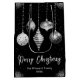 Celebrate the season in style with this elegant black Christmas gift bag featuring five silver and black hanging ornaments, scattered golden stars, and customizable text. Add your family name and year for a personal touch that elevates any holiday gift. Perfect for festive packaging, party favors, or under-the-tree presentation.