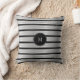 Elegant Silver And Black Stripes Monogram Throw Pillow