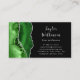This elegant and glamorous business card features a dark green agate marble background with faux silver glitter accents. The text combines handwritten script and modern sans serif fonts for a classy and sophisticated look. The sequins and glitter texture creates the perfect blend of chic and grunge.