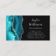 This elegant and glamorous business card features a teal blue agate marble background with faux silver glitter accents. The text combines handwritten script and modern sans serif fonts for a classy and sophisticated look. The sequins and glitter texture creates the perfect blend of chic and grunge.