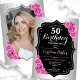 Elegant Silver Black Pink Photo 50th Birthday Invitation