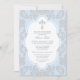 Elegant Silver Blue Damask Baby Boy Baptism Invitation