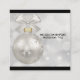 Business cards with a magical holiday design. Featuring a silver Christmas ball with snowflake decorations and finished off with a pretty silver bow. The background is a silver bokeh lights illustration with elegant stars scattered throughout.