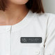 Island chic nametag features your name and title or company in classic white lettering on a soft black background adorned a tropical conch shell in faux silver foil. A beautiful choice for hairstylists, salon or spa employees, or anyone employed at an island or beach-based business.