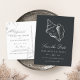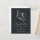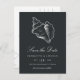 Notify guests of your upcoming destination, beach, or tropical island wedding with these beautiful summer save the date postcards featuring a faux silver foil conch shell illustration on a rich soft black background. Elegant white script and block lettering displays your wedding details (names, wedding date, and location); use the reverse side to share additional details like your wedding website.