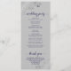 This beautiful wedding program features an elegant design with navy blue text on a gray background and lacy silver gray faux foil curls and swirls in the corners. The titles are written in fancy script calligraphy, and there is space for your ceremony and wedding party details, as well as a short thank you for your guest. Wonderful way to welcome your friends and family to your wedding celebration.