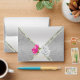 Elegant envelope in a Beautiful pearl white and silver damask setting with draped pearls and 3 roses, one white rose, 2 pink roses - Very elegant - NOTE: There are no real roses, silver, diamonds, gemstones,pearls, precious metal, or gold on this paper product. These are artistically designed to appear real by the artist.