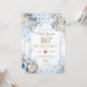 Elegant Silver & Dusty Blue Roses 80th Birthday Invitation