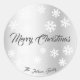 Elegant Silver Effect Snowflakes Custom Name Xmas Classic Round Sticker
