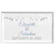 Make your wedding reception tables look beautiful with these custom table number card holders. Features a simple yet elegant design with a faux foil silver flourish, the wedding date and the couples' names in blue and gray fancy lettering. These card holders will make it easy for your guests to see the table number cards and find the right table at your banquet or reception.