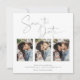 Handwritten Save the Date Silver Foil Marble Multiple Photo Card in a font that is elegant and evokes a romantic handwritten feel. On the back is a trendy silver foil style veins running through classic marble. Designed to use three of your favorite photos for added customization. Easily add your names and dates for a truly personalized design.