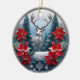 Elegant Silver Frame Reindeer, Poinsettias Deer 🦌 Ceramic Ornament