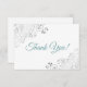 Elegant Silver Frills Teal Script on White Wedding Thank You Card