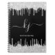 Elegant Silver Glitter Drips 2 Monogram Script Notebook
