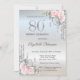 Elegant Silver Glitter Drips Roses 80th Birthday Invitation